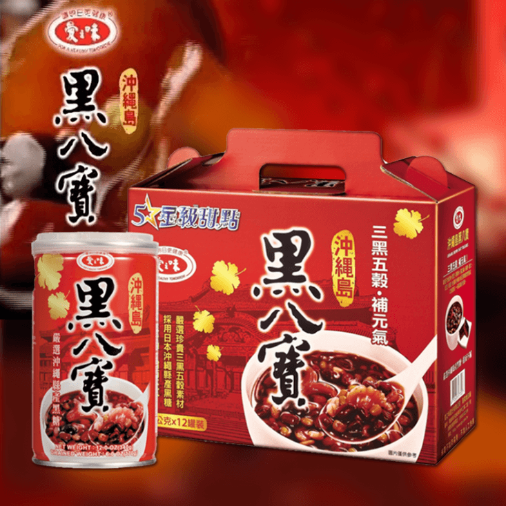 愛之味沖繩黑八寶禮盒【三黑五榖 補元氣】嚴選八種珍貴穀物—黑豆、紫米、燕麥、薏仁、紅豆、綠豆、桂圓、芝麻,保留真實的原味自然,營養價值高;並採用日本沖繩縣產黑糖,純淨自然,完全無添任何添加,甜蜜的滋味入口即化,口感香醇、甜而不膩!【5星級甜點DIY 創意吃法輕鬆上桌】涼夏八寶冰:將刨好的清冰倒入一罐愛之味黑八寶,清涼可食,美味的消暑甜品。