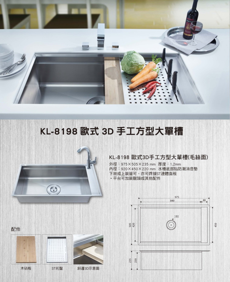 商品規格:歐式3D手工方型大單槽
