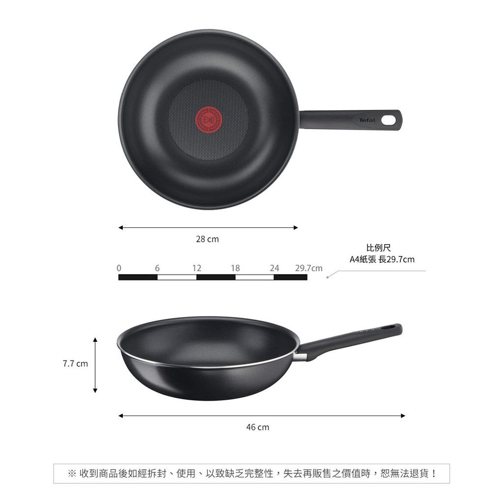 ◆尺寸:鍋具口徑28cm/鍋底直徑15.5cm/含鍋把總長46cm/鍋深7.7cm