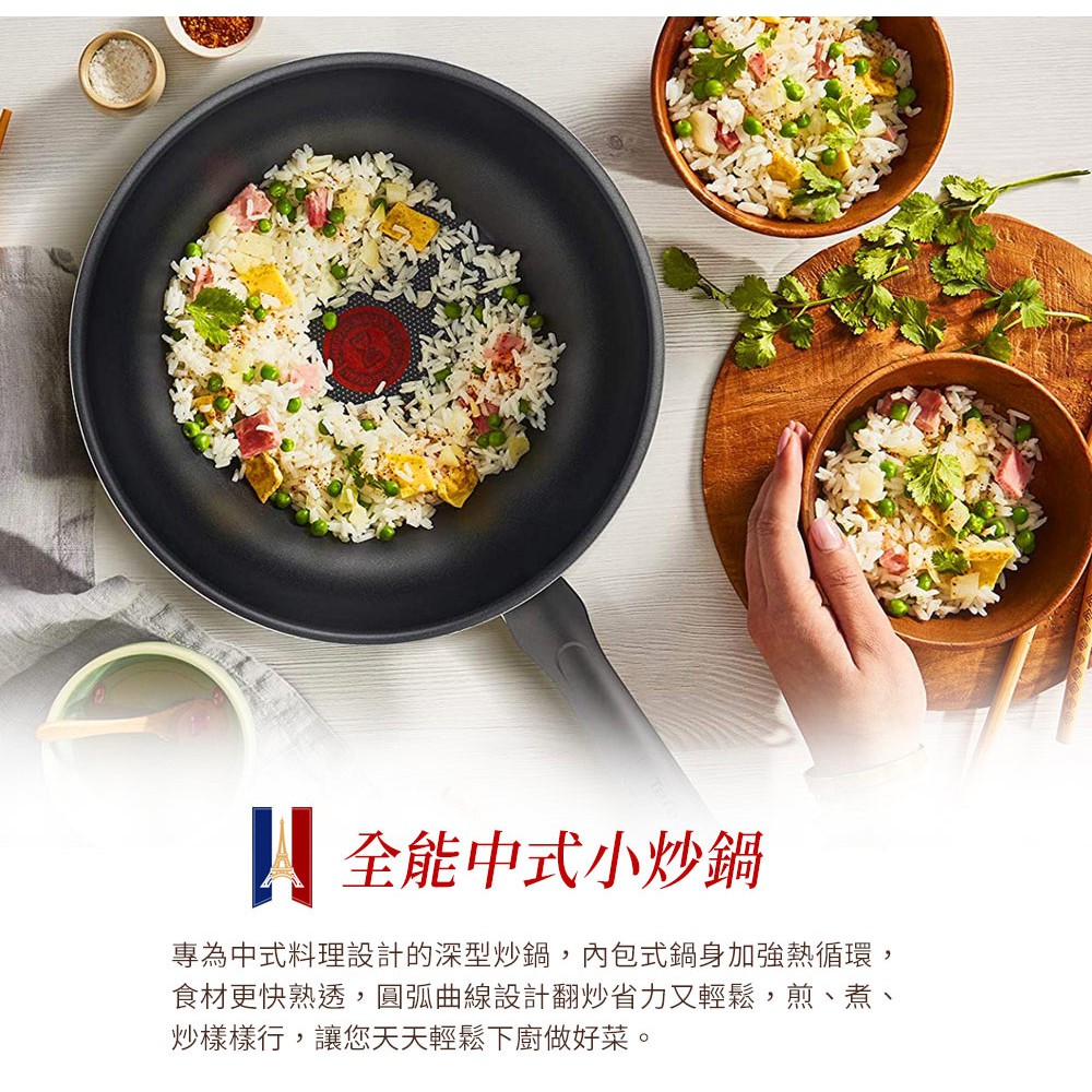 專為中式料理設計的深型炒鍋,內包式鍋身加強熱循環,食材更快熟透,圓弧曲線設計翻炒省力又輕鬆,煎、煮、炒樣樣行,讓您天天輕鬆下廚做好菜。