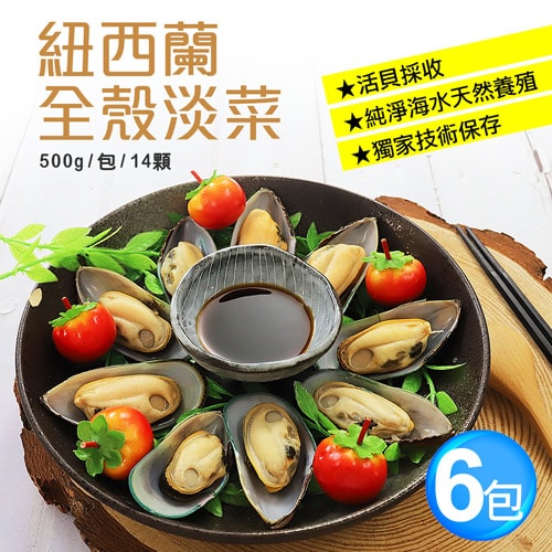 1.商品品名:紐西蘭全殼淡菜6包組(500g/包/14±3顆)