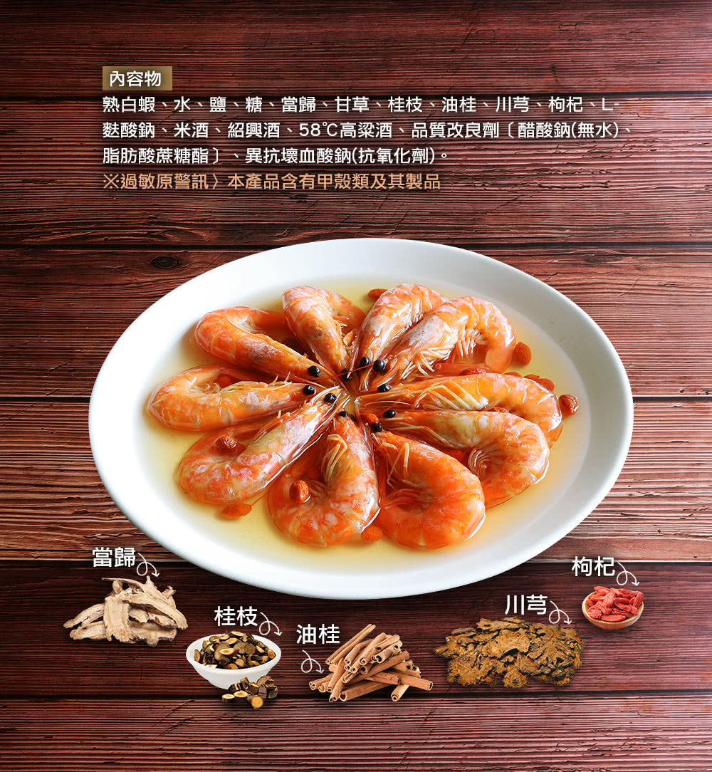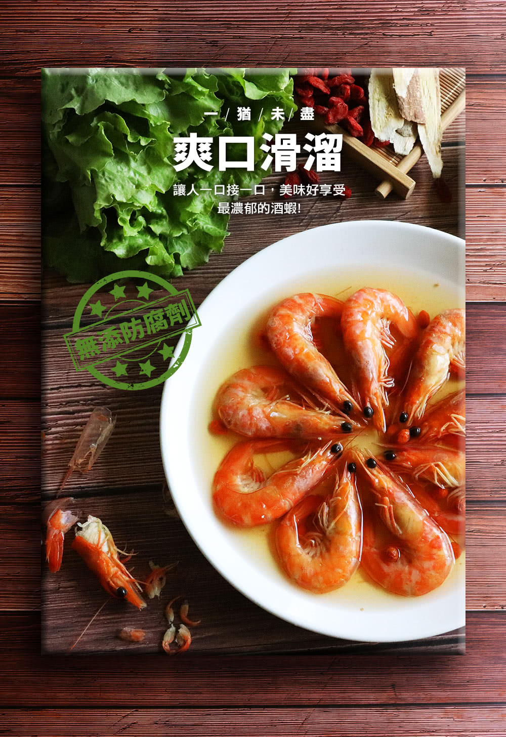 1.商品品名:特大陳紹醉蝦2盒(500g/盒/10尾)
