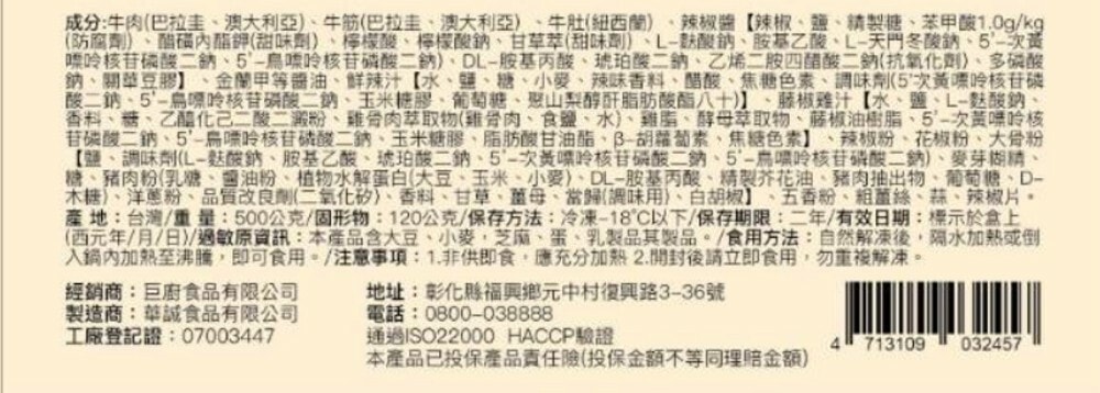 製造廠商或國內負責廠商名稱:巨廚食品有限公司