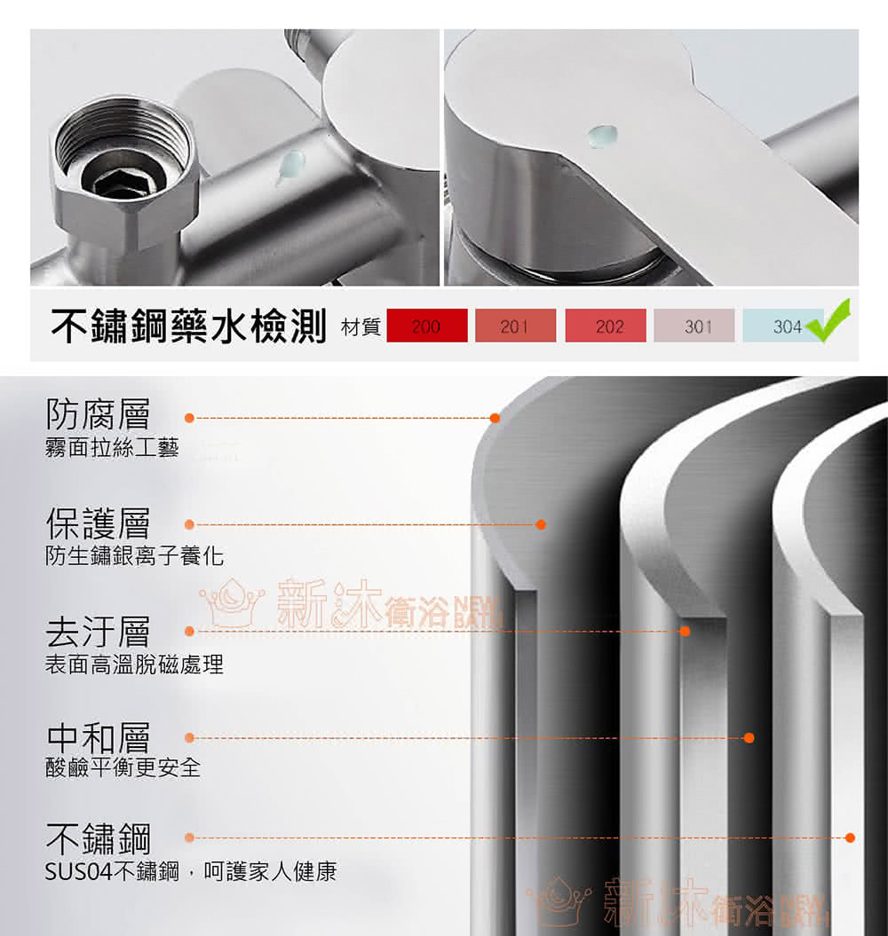 內容物:304不鏽鋼水龍頭、304不鏽鋼水管、304固定座、零件組。