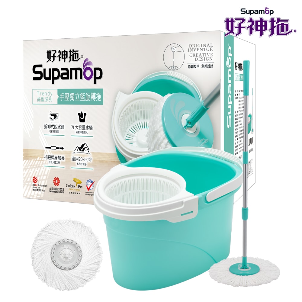 【好神拖】美型系列獨立籃旋轉拖把組(1拖+1桶+2布)
