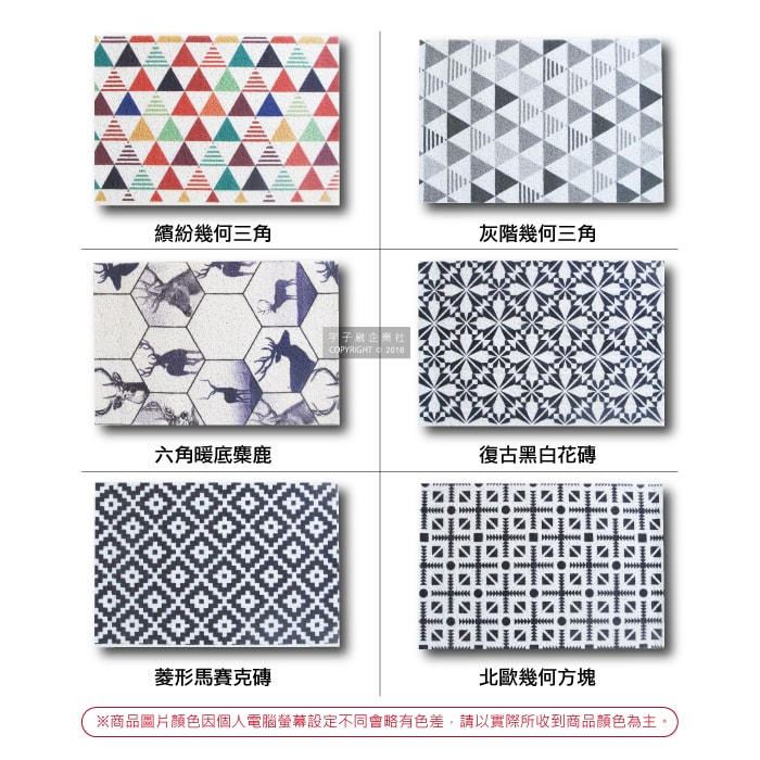 ●款式:繽紛幾何三角、灰階幾何三角、菱形馬賽克磚、復古黑白花磚、北歐幾何方塊