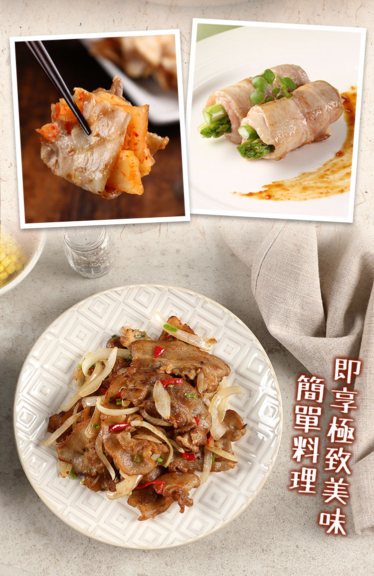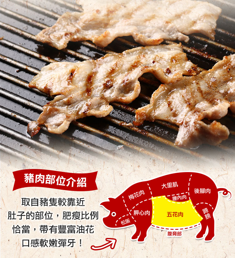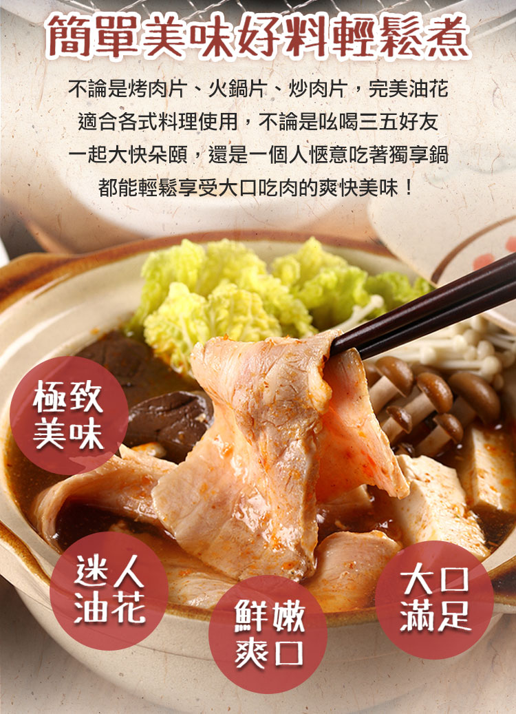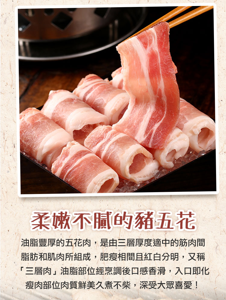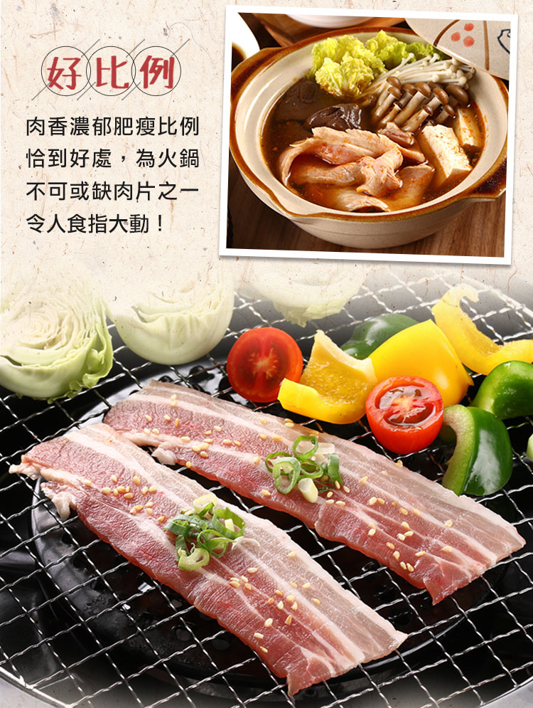 .肥瘦比例恰當口感軟嫩彈牙,豐富油花的五花肉片