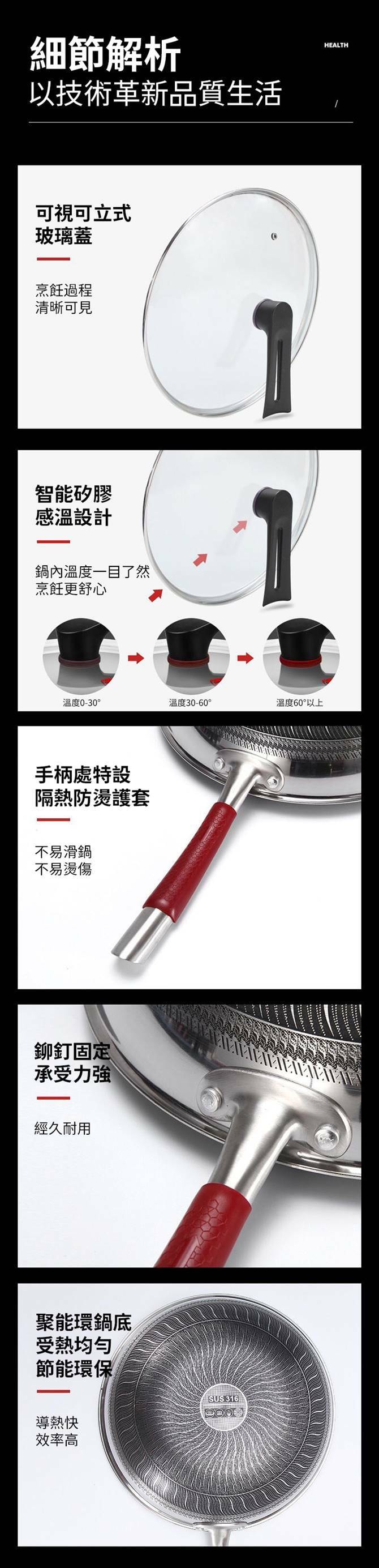 鍋蓋智能感溫設計,鍋內溫度一目了然~