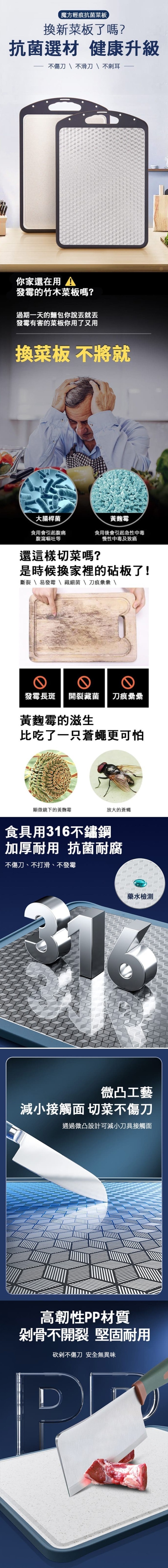 316不鏽鋼面,韌性好不易傷刀,無異味;
