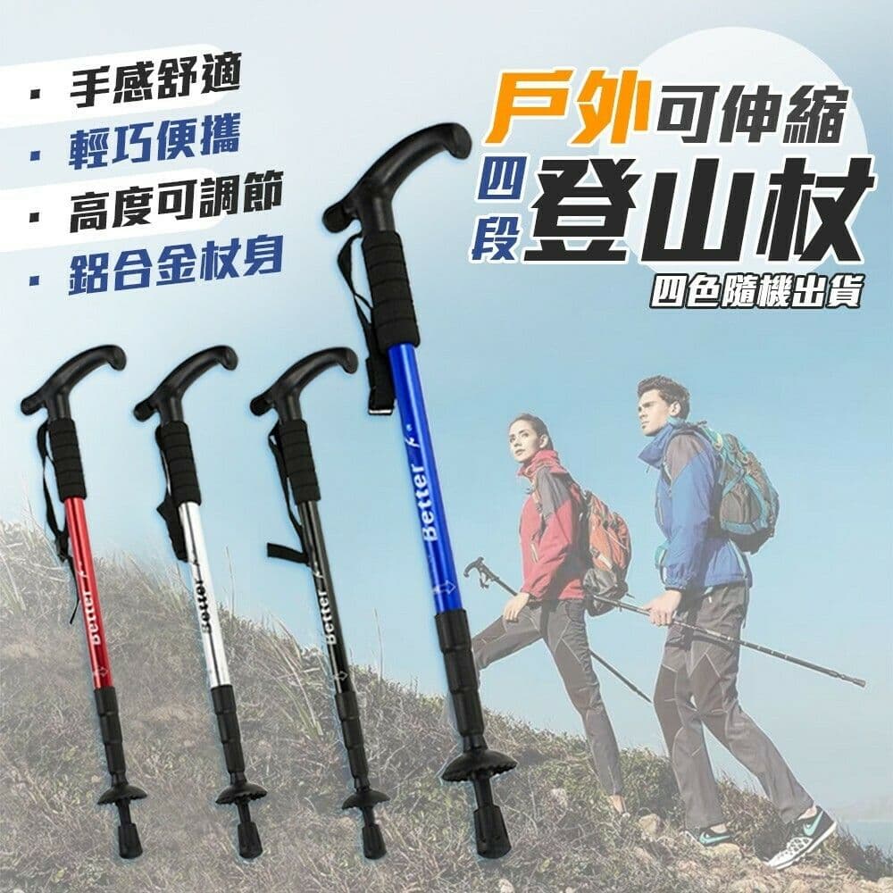 戶外可伸縮四段登山杖 手杖 爬山裝備 登山杖 拐杖 露營 扶手 助步器 戶外 伸縮