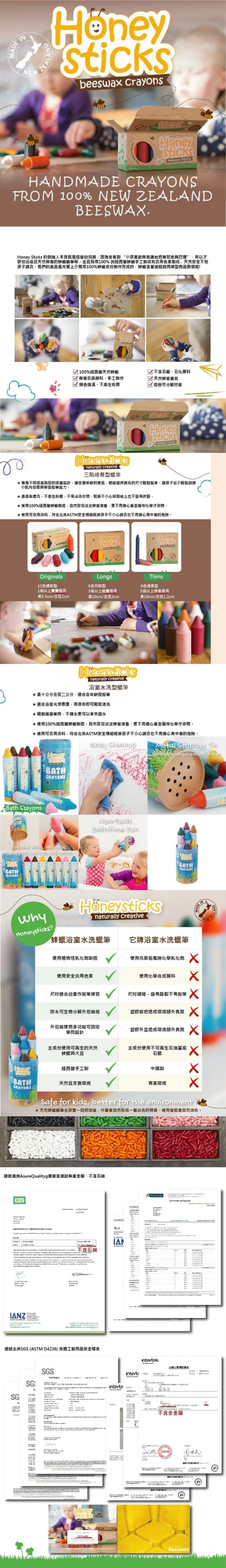 商品:Honey Sticks純天然蜂蠟無毒蠟筆-3歲以上幼童適用(6色高胖型)