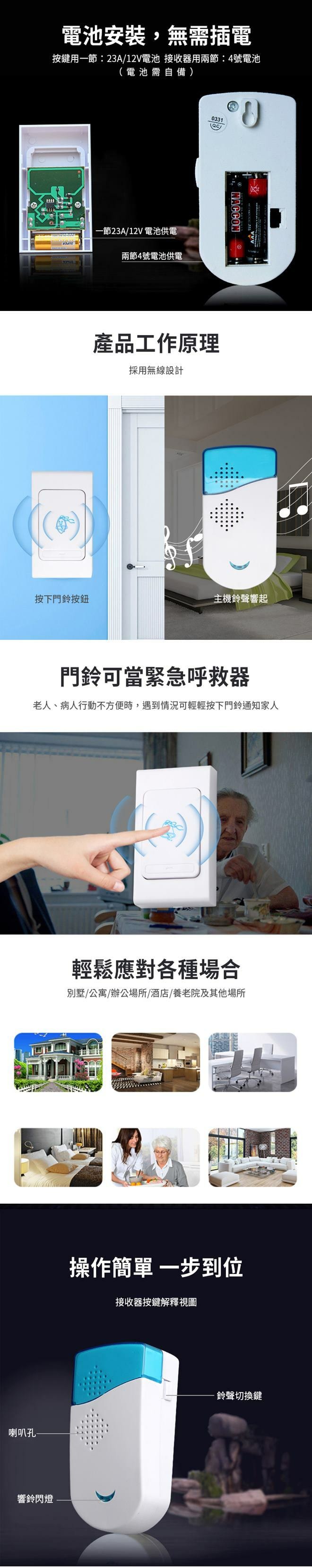 【U-like】免打孔遠距離電子音樂門鈴 電子門鈴 呼叫鈴 呼叫器 救護鈴 看護鈴 呼救器 陪護鈴 響鈴 電子響鈴 求救鈴 門鈴 無線門鈴 智能