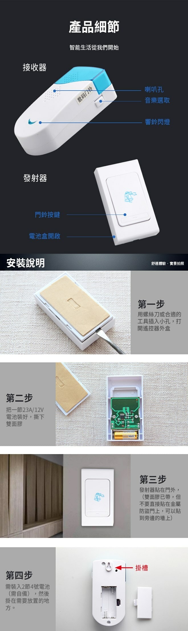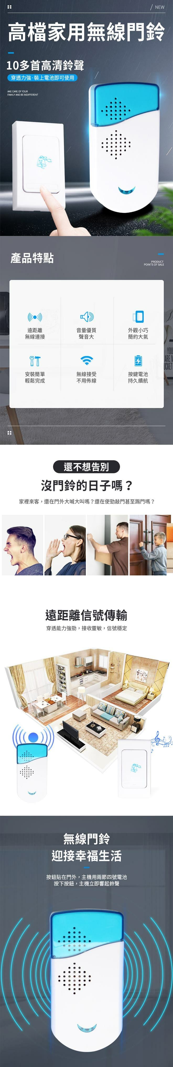 多首音樂門鈴可切換,穿透力強,信號接收靈敏