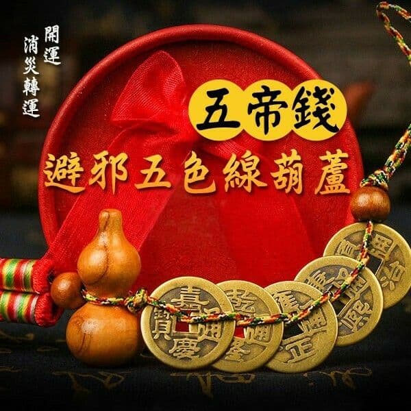 辟邪,葫蘆,聚財銅錢,桃木,吊穗,桃木珠,五彩線,風水,五帝,保平安,五色線,紅繩,過年,開運,五帝錢,福祿平安,消災,駆災辟邪,流蘇