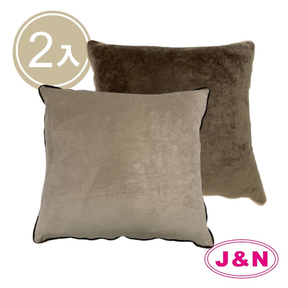 【J&N】短毛絨滾條抱枕60*60-咖啡色米色(2入/1組)