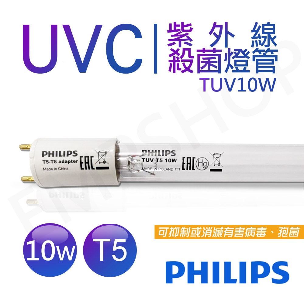【Philips 飛利浦】 UVC紫外線殺菌10W燈管 G13 T5/T8皆可用 波蘭製 TUV 10W