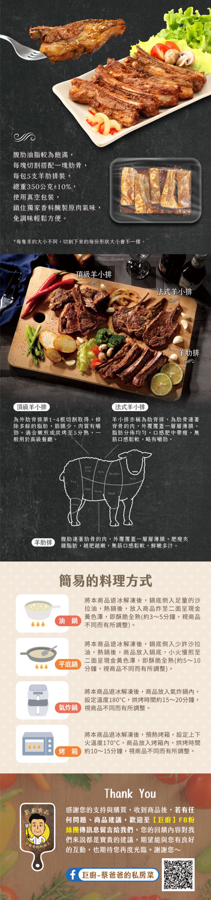1.商品組合/規格:秘醃生羊肋排/羊小排x4盒