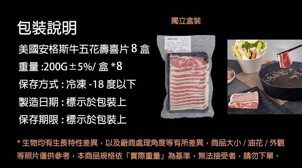 1.商品品名:【點食衣】美國安格斯五花壽喜片8盒組(200G/盒)