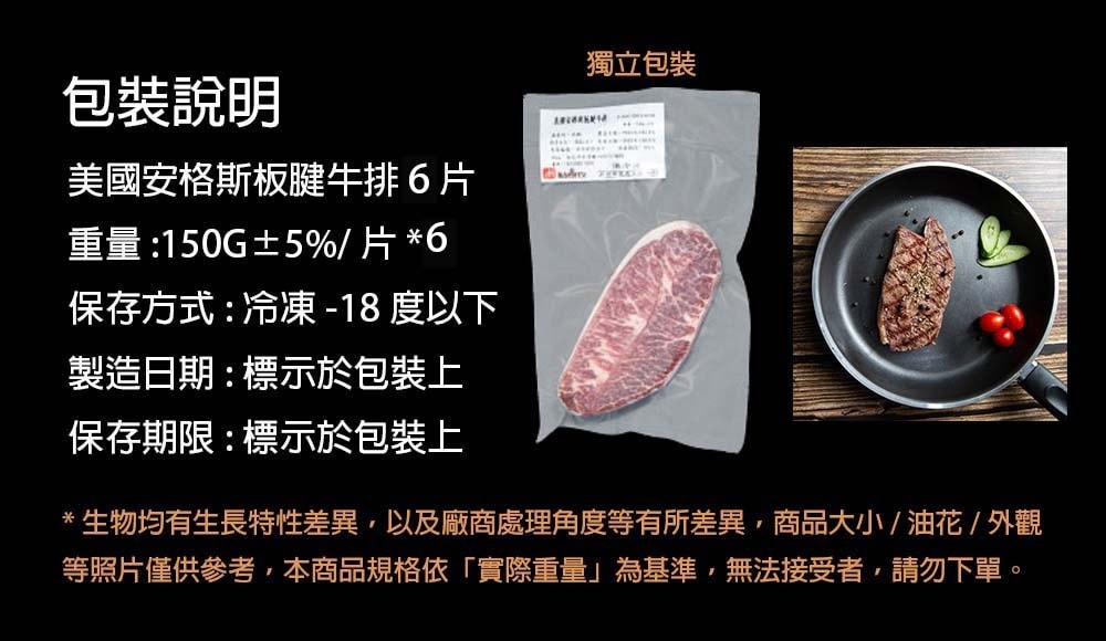 1.商品品名:【點食衣】美國安格斯板腱牛排6片組(150G/片)