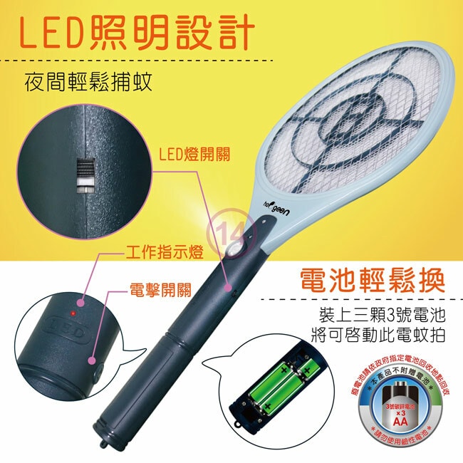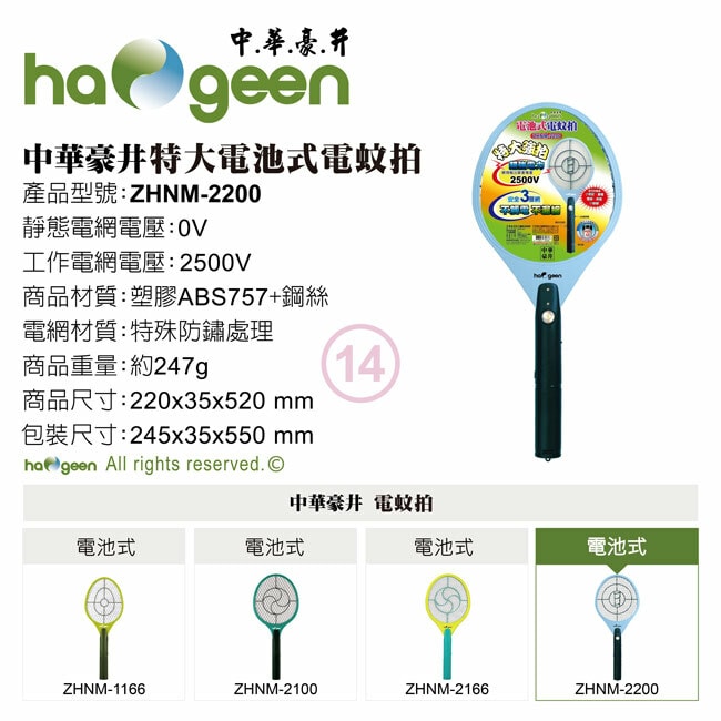 中華豪井特大強拍電池式電蚊拍 ZHNM-2200