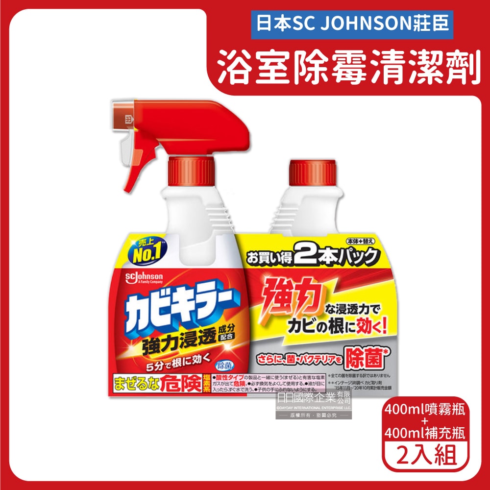 【S.C. JOHNSON 莊臣】 (1+1超值組)浴室多用途免刷洗5分鐘瞬效強力浸透消除霉根鹼性泡沫清潔劑400ml噴霧瓶+400ml補充瓶
