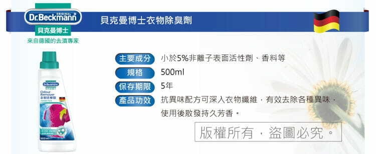 【Dr.Beckmann 德國貝克曼博士】衣物除臭劑500ml