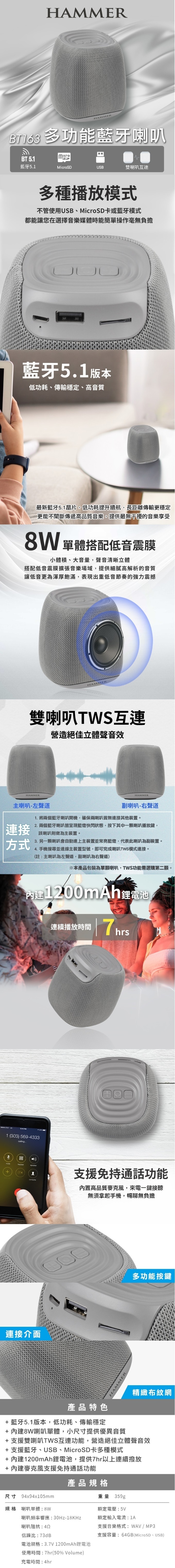 【INTOPIC 廣鼎】 SP-HM-BT163 多功能 藍牙喇叭