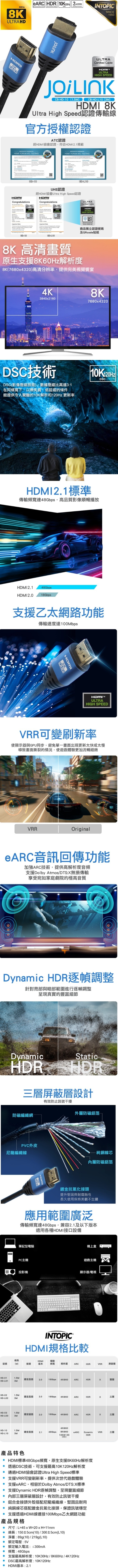 【INTOPIC 廣鼎】 HDMI 8K Ultra High Speed認證傳輸線(HD-10/150cm)