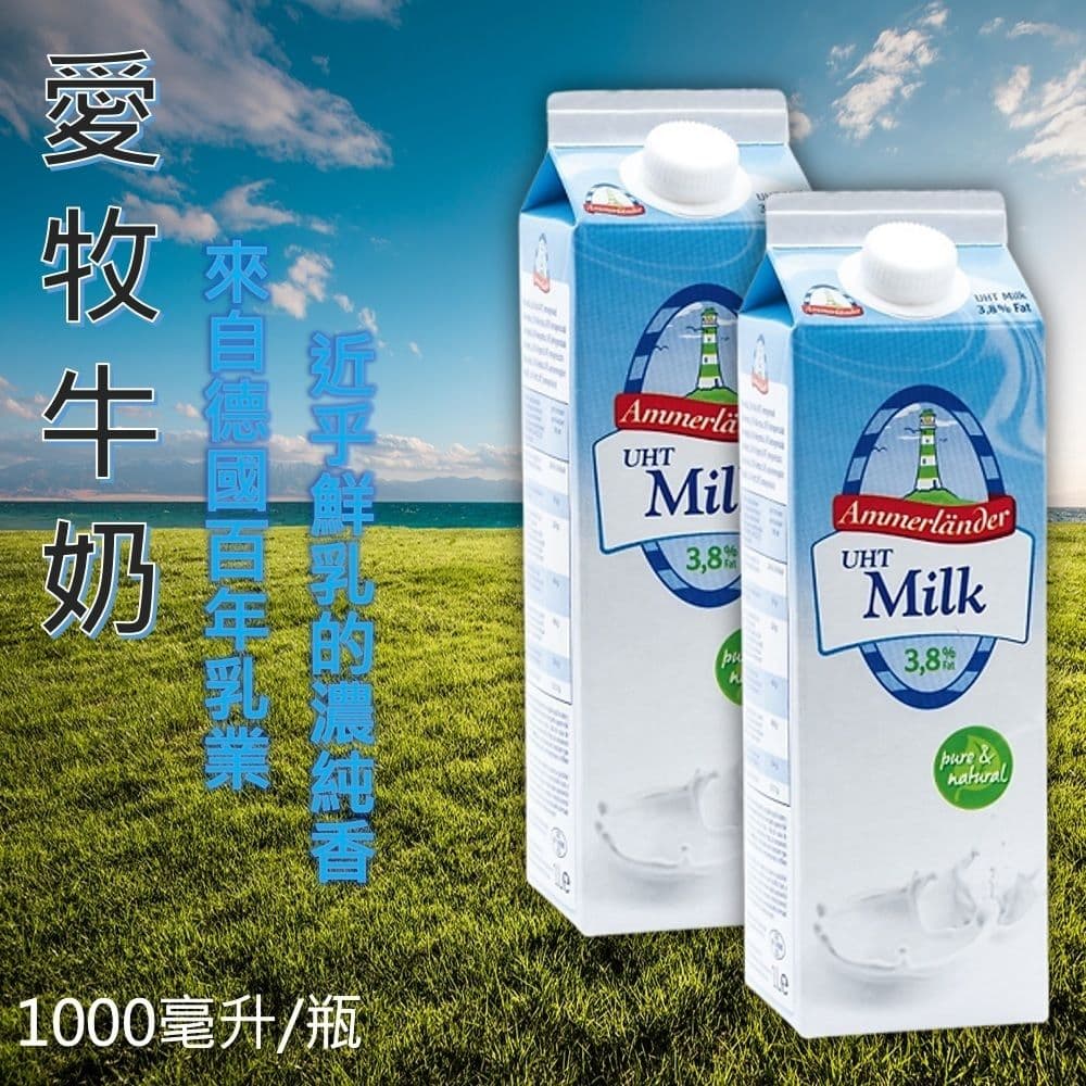 1.商品品名:【Ammerlander愛牧】德國純牛奶1000ml(乳脂含量達3.8%)x4瓶/組