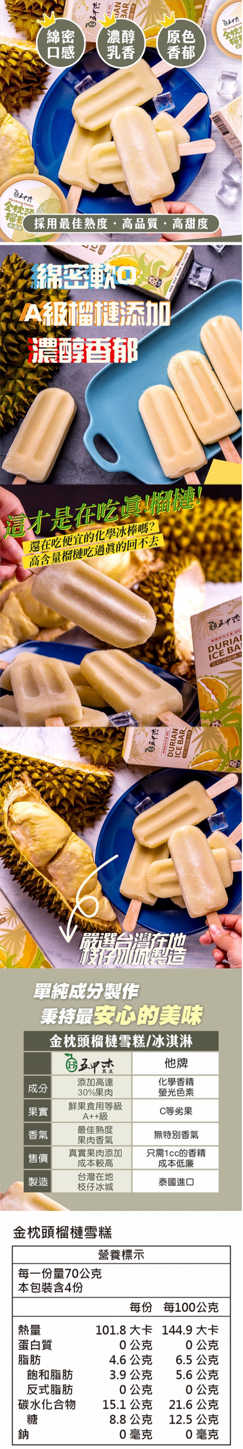 1.商品品名:《五甲木》金枕頭榴槤雪糕(每盒70g*4入,共8盒)