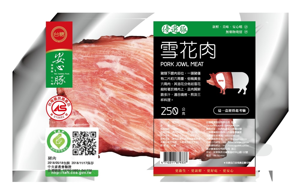 1.商品品名:【台糖安心豚】 1kg雪花肉/霜降肉3包組(CAS認證豬肉)