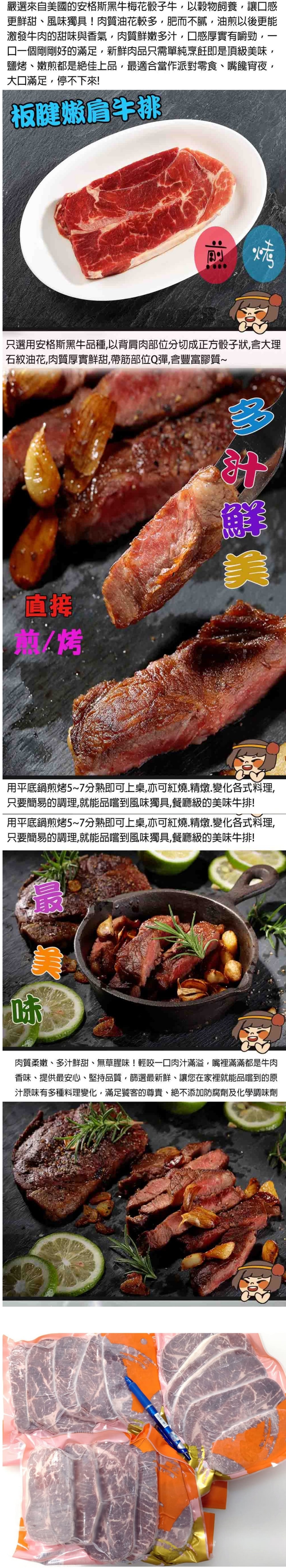 1.商品品名:美國安格斯CHOICE板腱嫩肩牛排