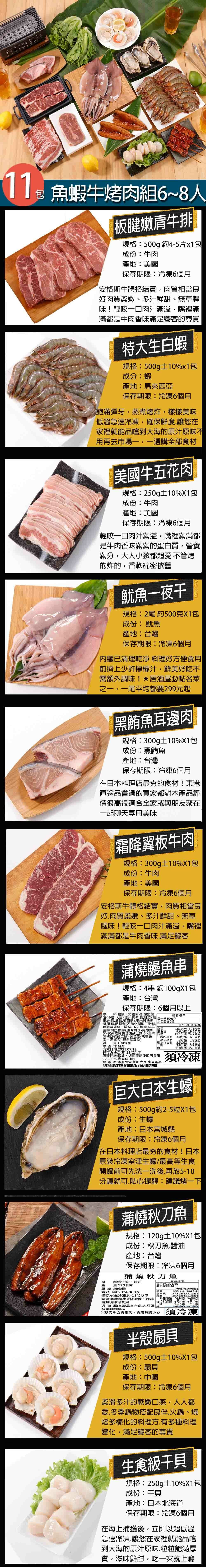 1.商品品名:魚蝦牛烤肉組 11件組(6-8人份)