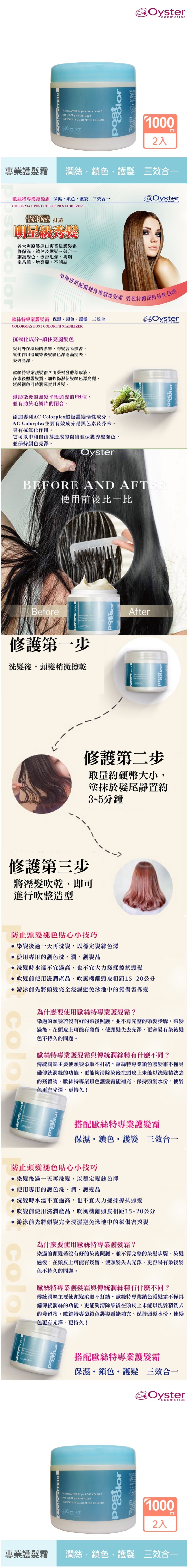 義大利原裝進口 Oyster 歐絲特 專業護髮霜2入組(超大容量500ml 潤絲、鎖色、護髮)