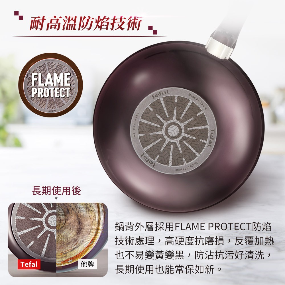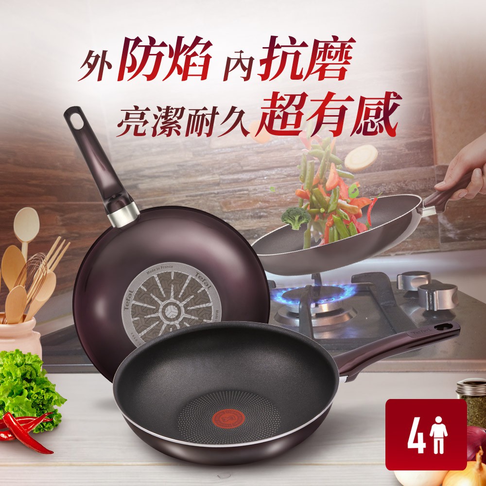 【Tefal特福】烈焰武士系列28CM不沾小炒鍋+玻璃蓋|法國製