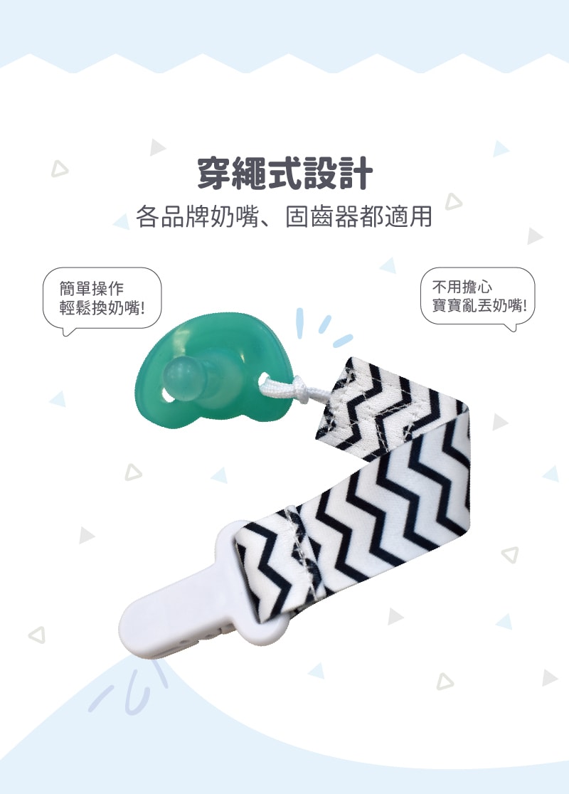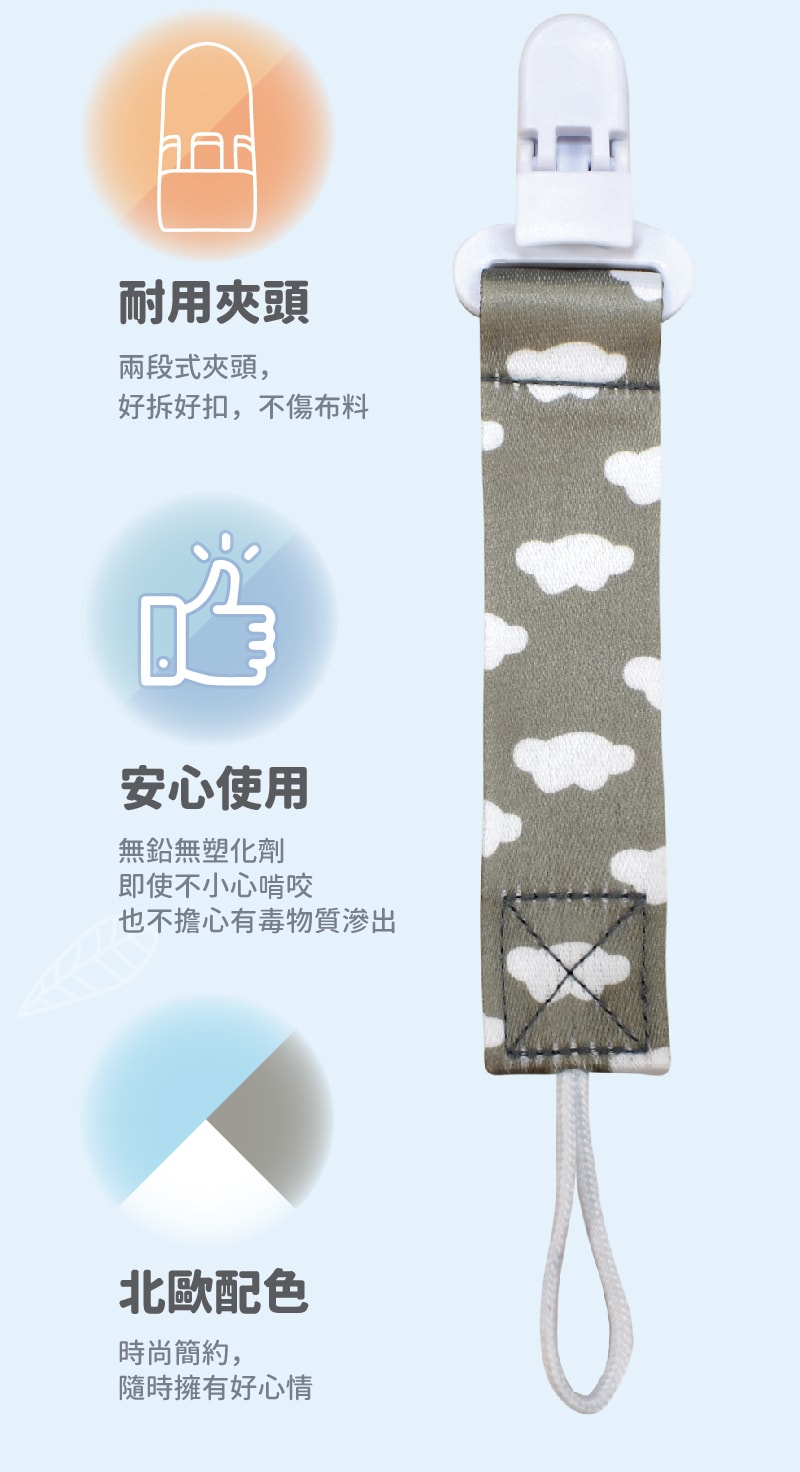 *奶嘴夾採用耐用夾頭,好拆好扣,不傷布料