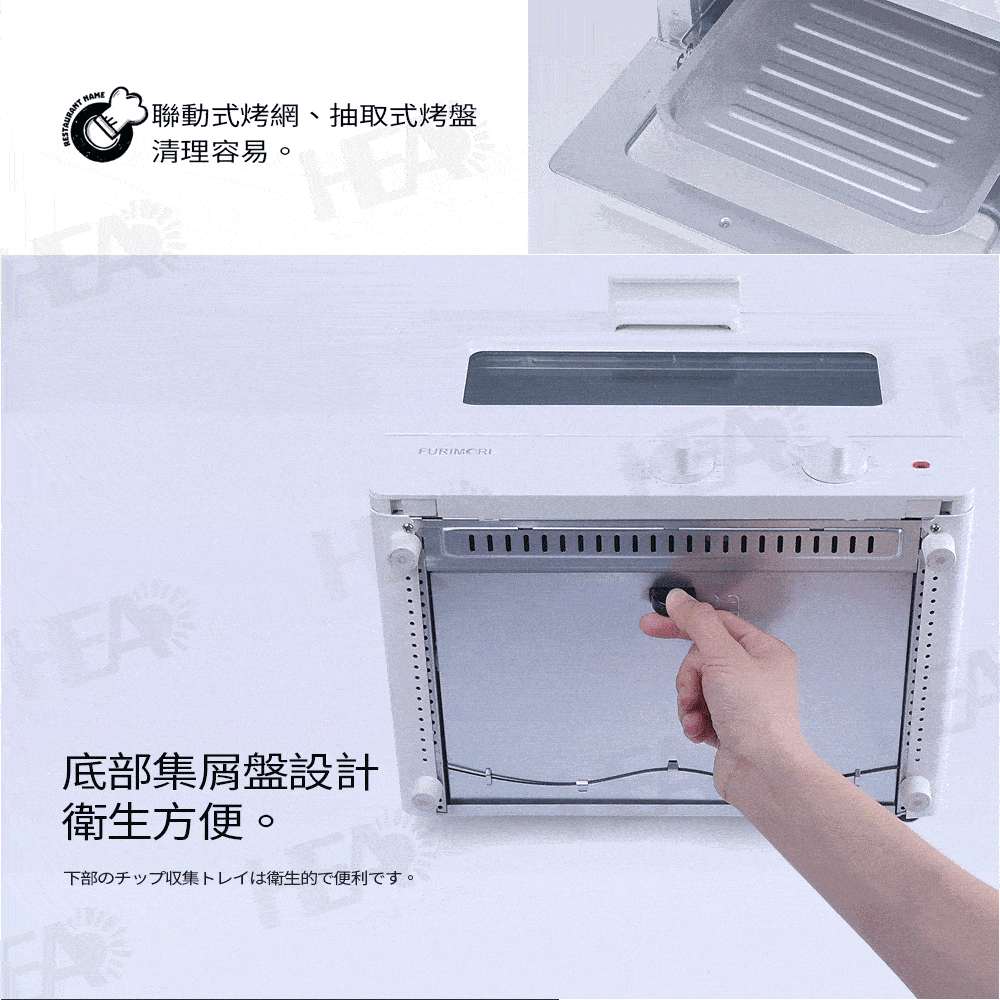 ◎聯動式烤網、抽取式烤盤,清理容易。