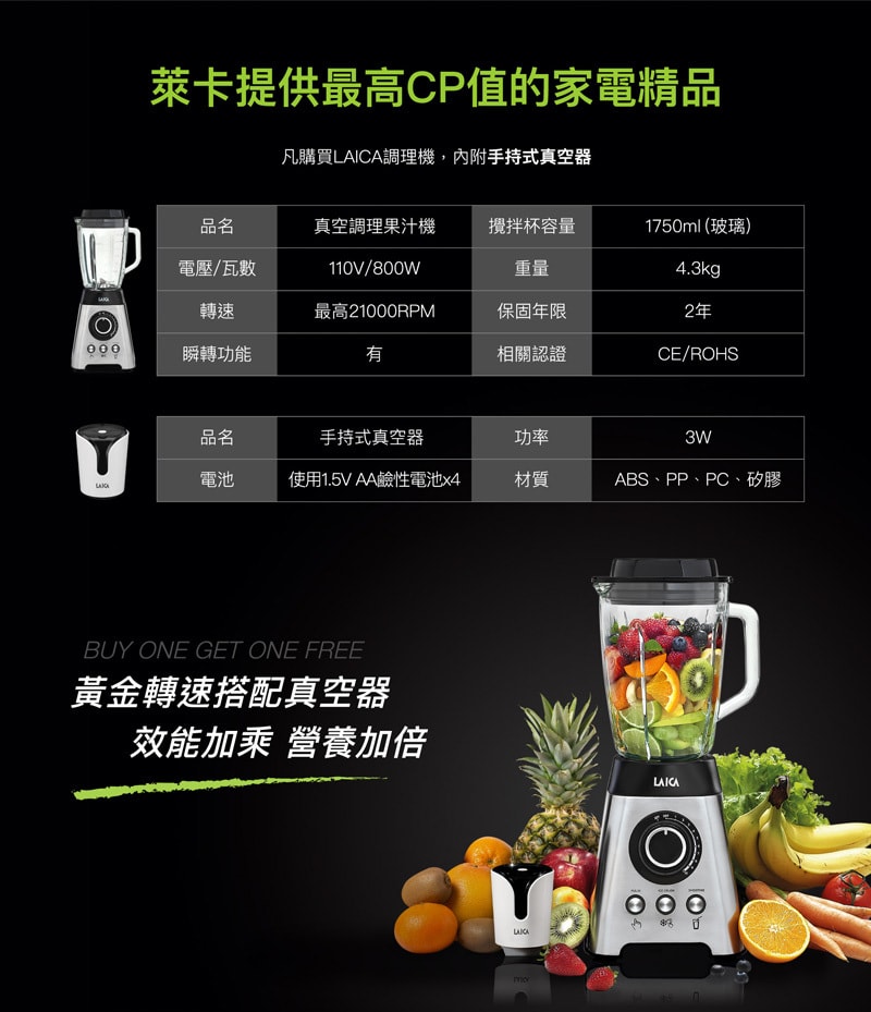 配件:主機、攪拌杯、說明書、手持真空器(VT3240)