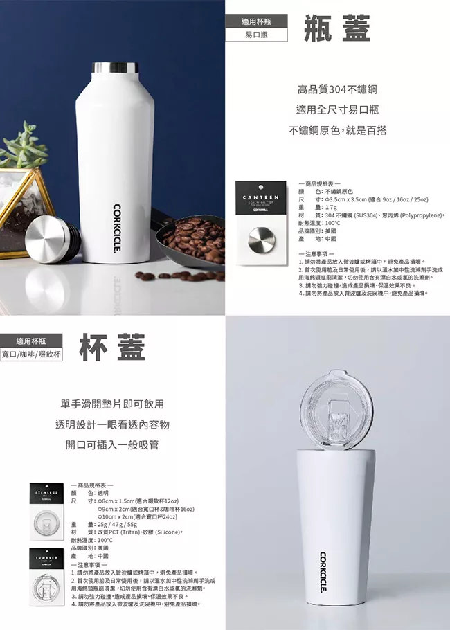 ◆適合CORKCICLE全系列寬口杯、咖啡杯使用。◆請依照相對應的尺寸購買。◆滑蓋設計,不需取下杯蓋、方便隨時飲用。