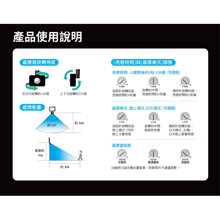 感應器旋轉角度:左右可旋轉約160度/上下可旋轉約220度