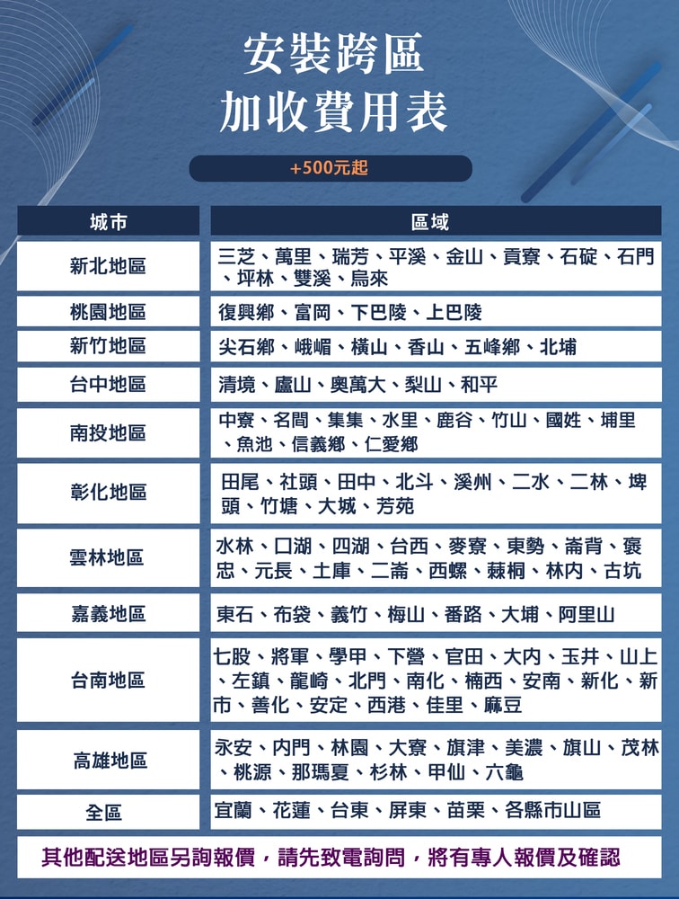 ◆如商品有跨區,樓層(無電梯),須由客人自行負擔額外費用。
