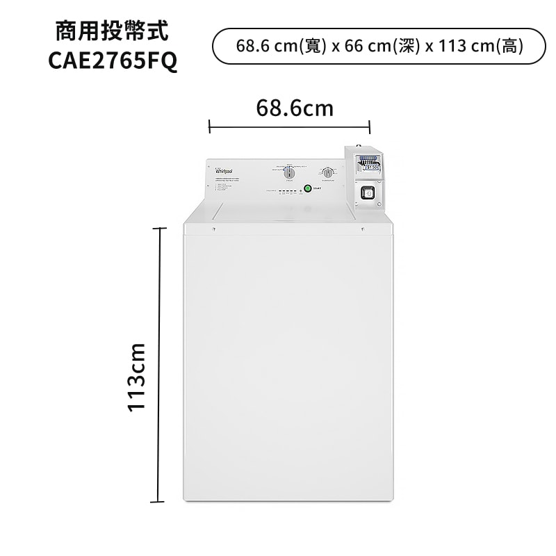 【Whirlpool 惠而浦】 【CAE2765FQ】9公斤直立洗衣機商用投幣式(電力型)-典雅白 (標準安裝)