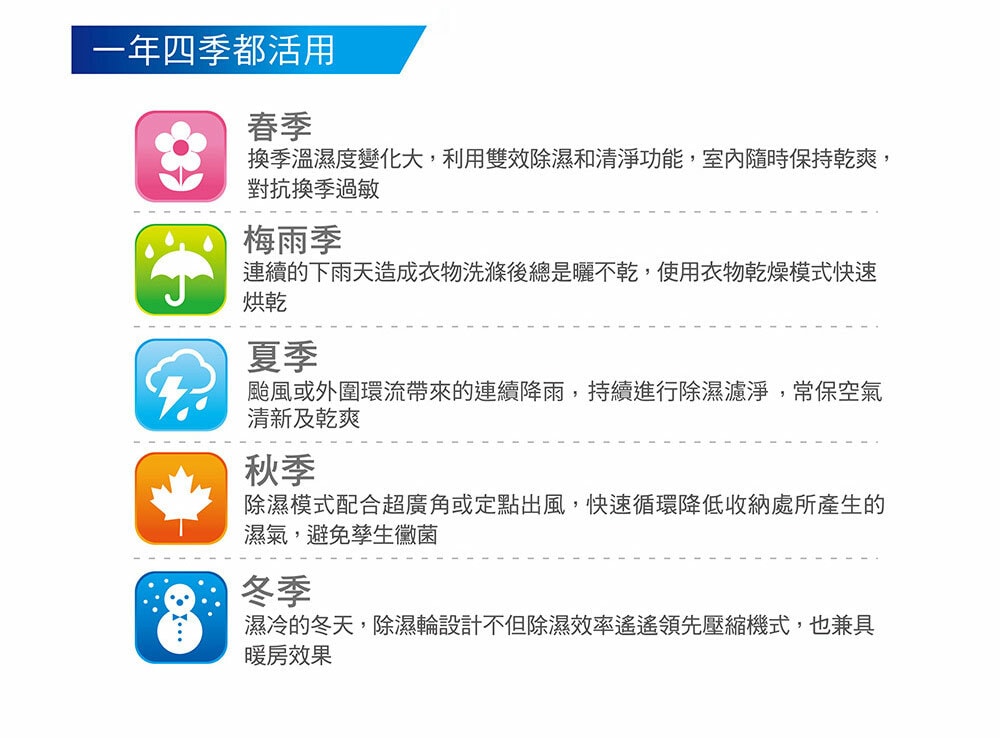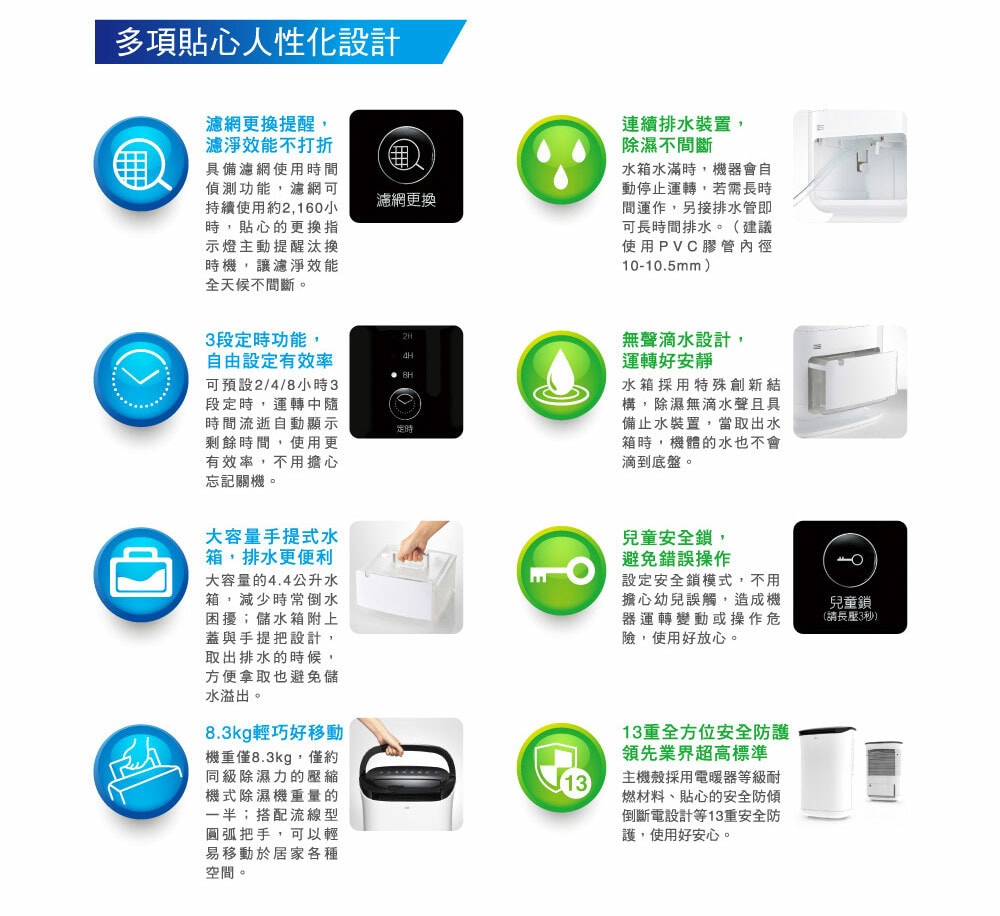 ◆獨特的濾網結構設計,擁有低風阻特性,能夠維持進出風口的風量,同時兼顧清淨功能卻不影響除濕效率。
