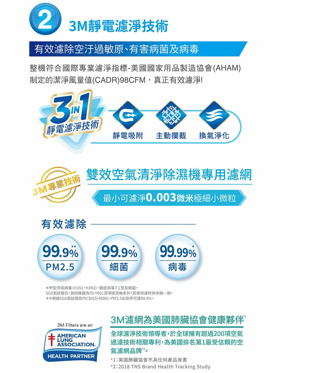 ◆採用3M靜電濾網技術,可以有效過濾空氣中例如塵埃、花粉、塵蹣、寵物毛屑等過敏原與帶菌微粒,對於空氣汙染中危害健康甚大的PM2.5細懸浮微粒,也可高效過濾。