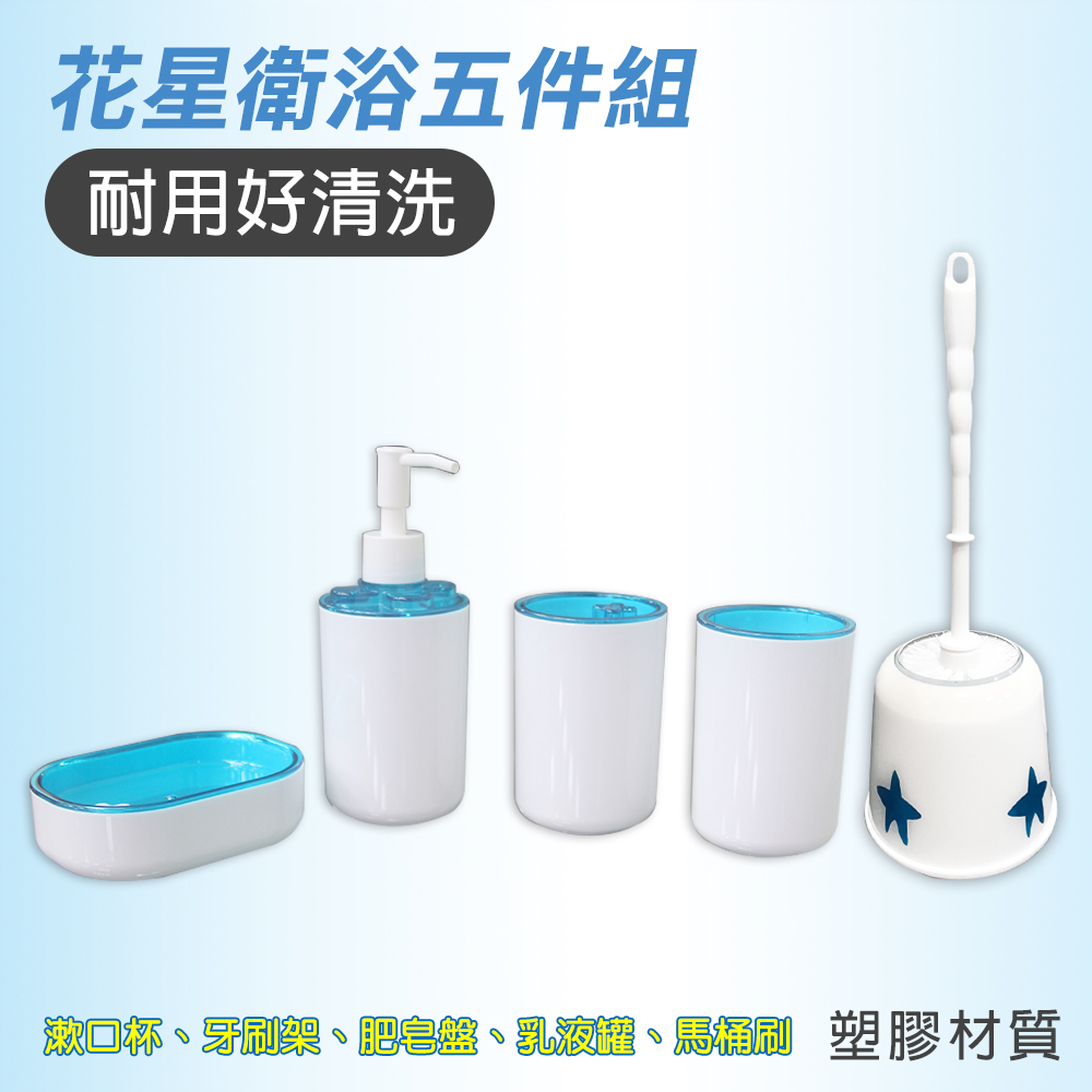】 花星系列衛浴五件組 馬桶刷/牙刷架/漱口杯/肥皂盤/乳液罐(衛浴用品、洗漱用品)(3月20號開始出貨)
