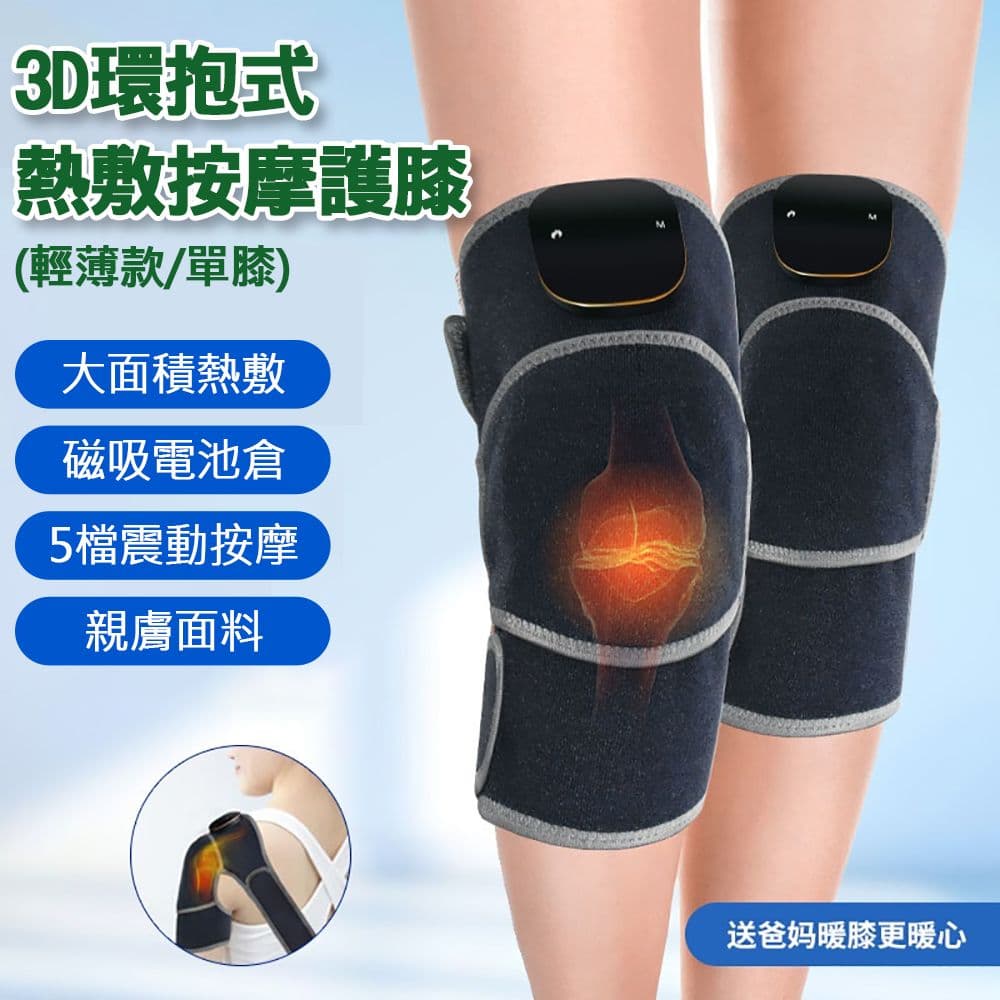 【Mavoly 美樂麗】 3D 環抱式熱敷按摩護膝 C-0485(輕薄款/單膝用/5檔震動按摩/磁吸電池倉)