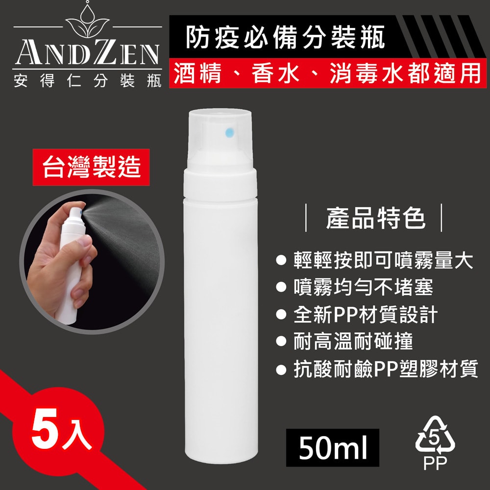 】 安得仁 50ml台灣製造PP噴霧瓶分裝瓶5入/組(噴霧瓶/分裝瓶/酒精分裝瓶/消毒水瓶/分裝噴瓶)