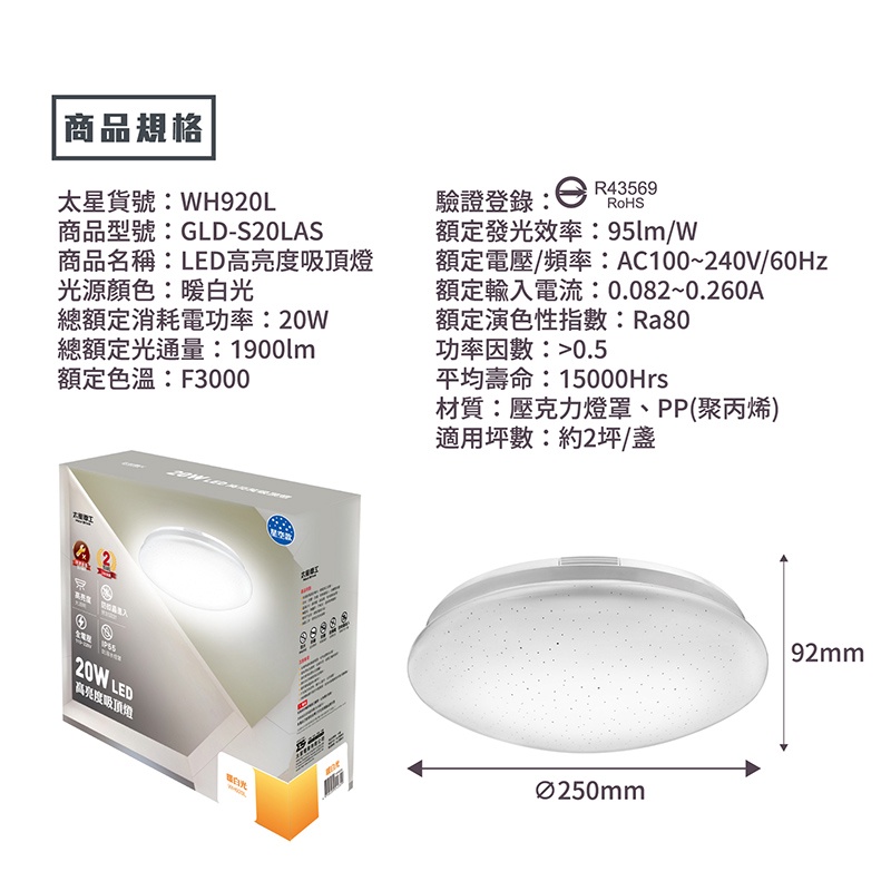 材質 : 壓克力燈罩、PP(聚丙烯)