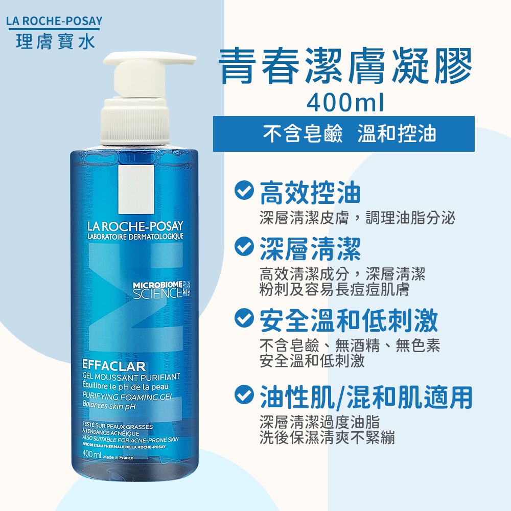 【La Roche-Posay 理膚寶水】 (2入)青春潔膚凝膠400mlM+(新升級)