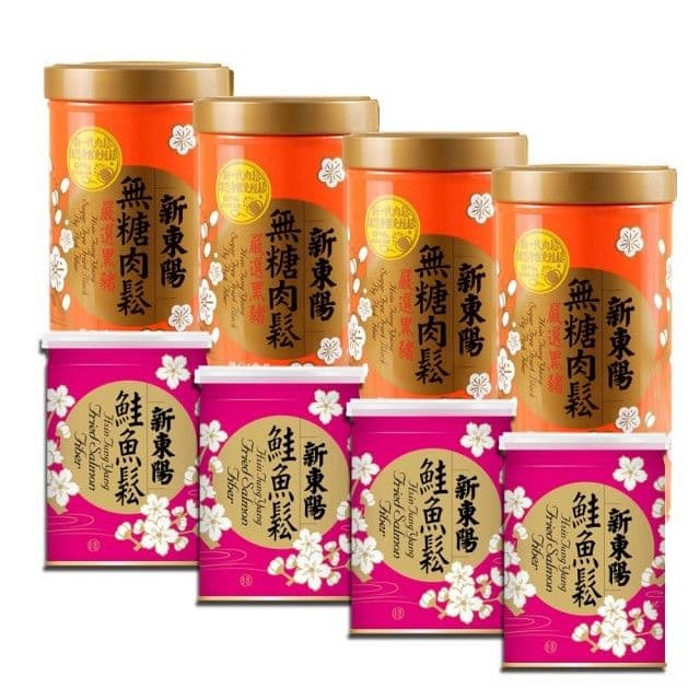 商品名稱:【新東陽】老饕最愛黑豬無糖肉鬆255g*4罐+鮭魚鬆180g*4罐